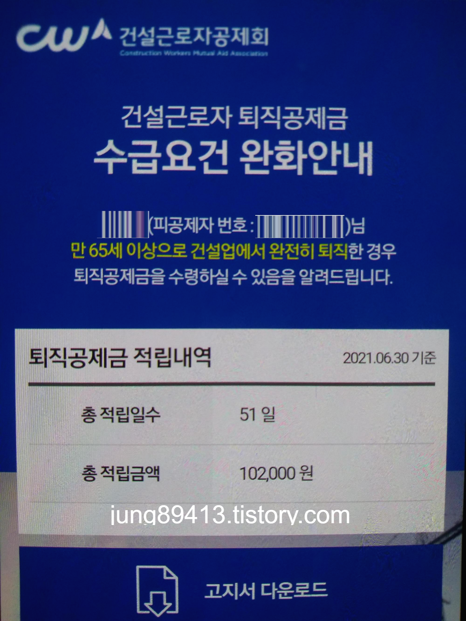 아버지께서 젊은시절 건설근로자를 51일간 한 적이 있으셨는데 퇴직공제금 요건이 완화되어서