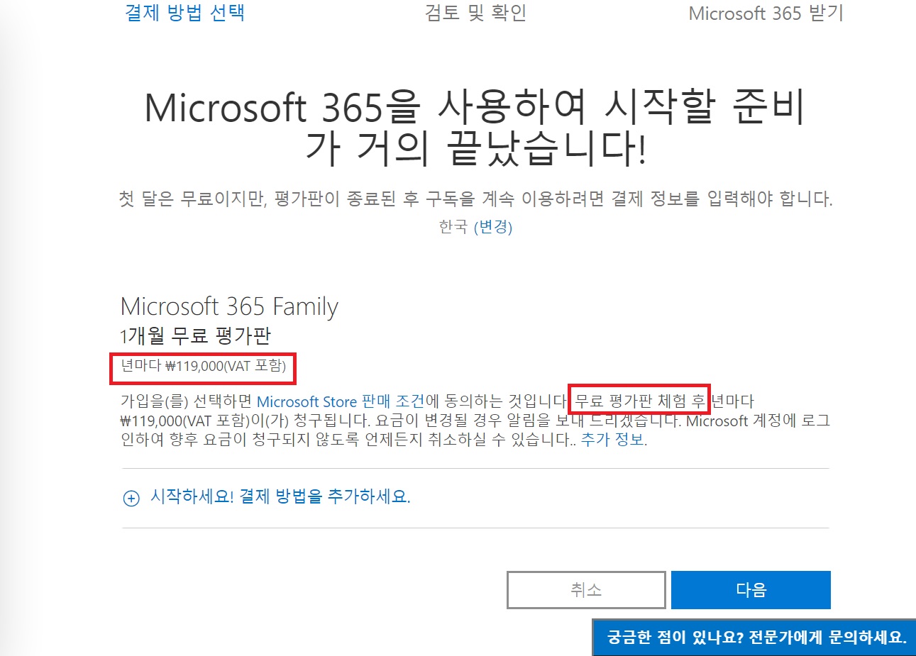 체험 기간이 끝나면 자동으로 연간 구독 금액 119000원이 결제되기 때문이죠.