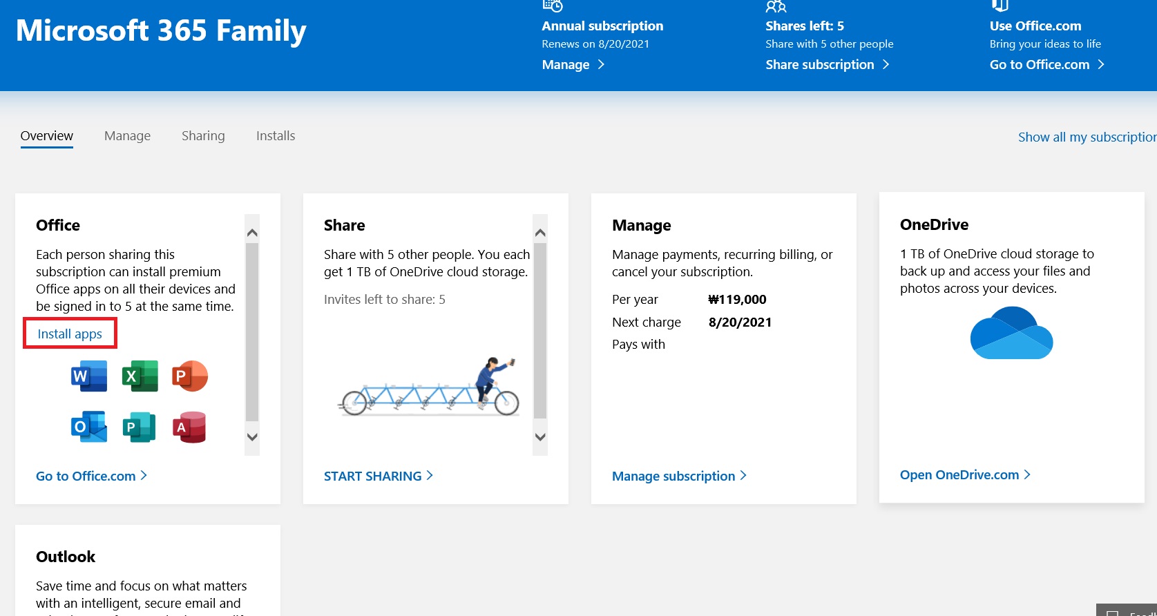 office에서 Install apps를 클릭