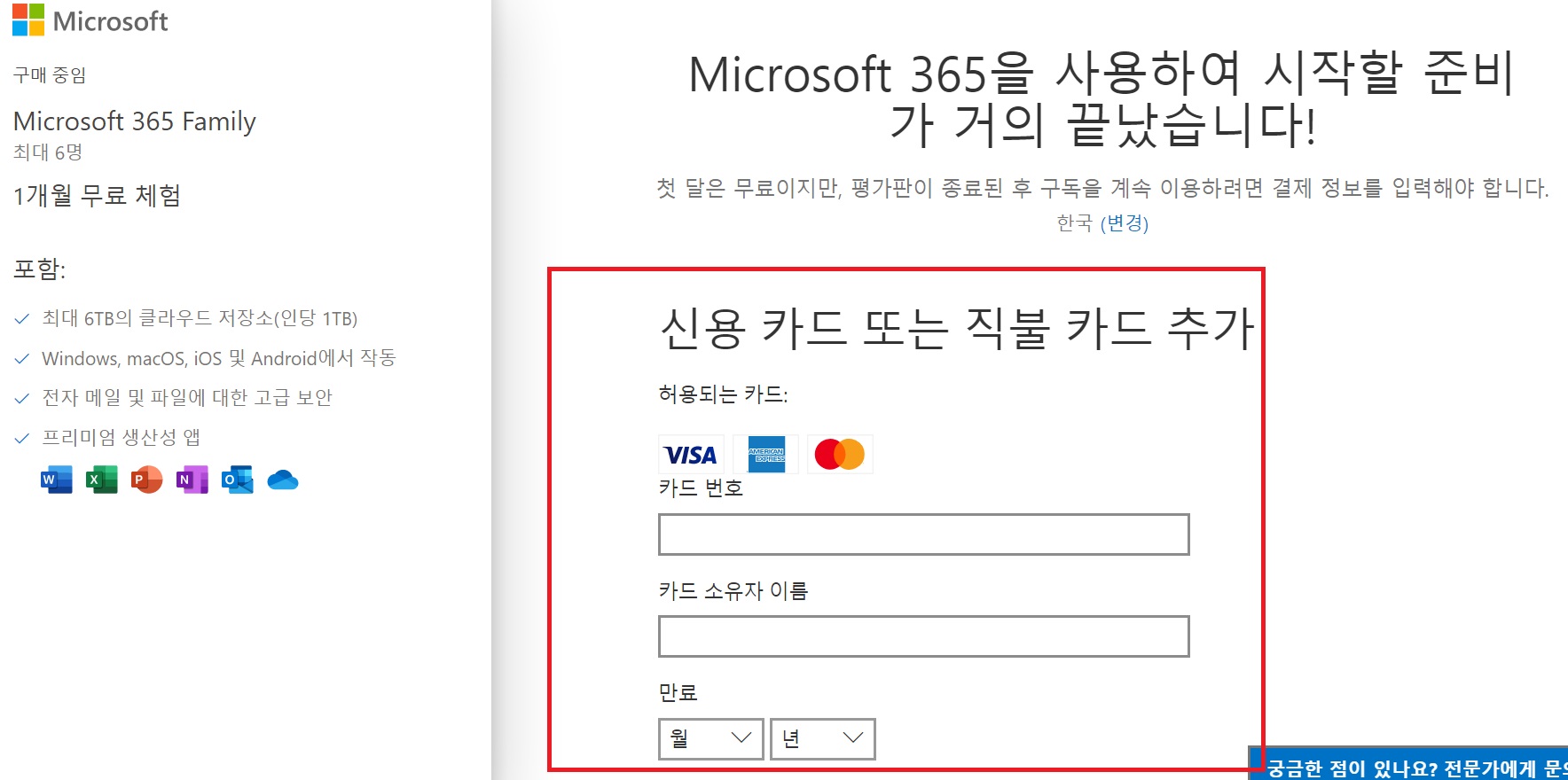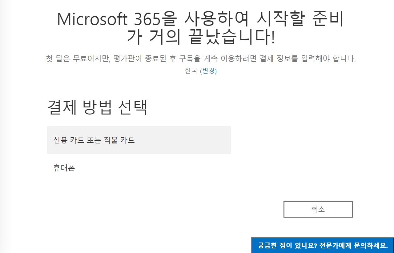 밑에 글씨를 보면 무료 체험을 위해서 신용카드가 필요하다고 적혀 있습니다.